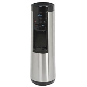 VWD9506BLS Features: Connects directly to your water line eliminating the need for bottled water Hot, room and cold water Stainless steel finish with anti-fingerprint coating High efficiency compressor for improved cooling Energy saving KETTLE feature rapidly provides hot water without the cost of constantly re-heating water Easy to use push button taps with childproof safety switch for hot water Stainless steel hot and cold reservoirs for long-lasting reliability Dual float system prevents overflow conditions Storage compartment allows easy access to filtration system Features leak detection and auto shut-off switch Carbon block filter removes chlorine taste, odors and particulate / sediment, 5 um nominal Quick connect style filter cartridge, 1/4 turn release Filter life: 1500 Gallons Finish: Black/Stainless Steel Dimensions: 11"(W) x 12"(D) x 38.6"(H)